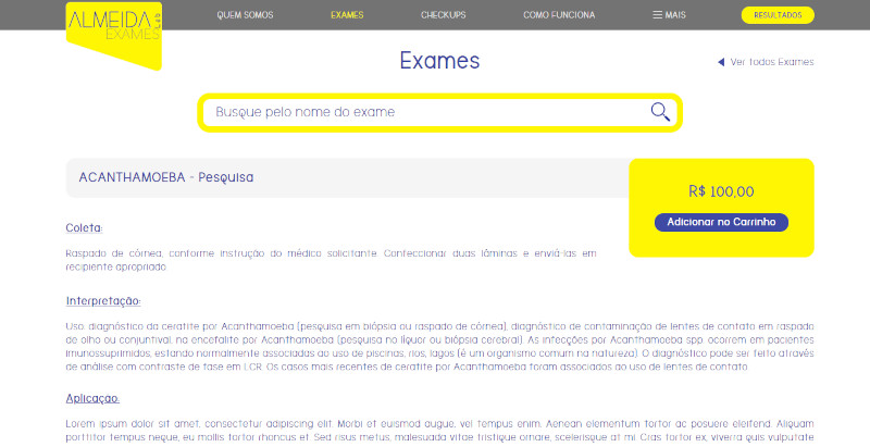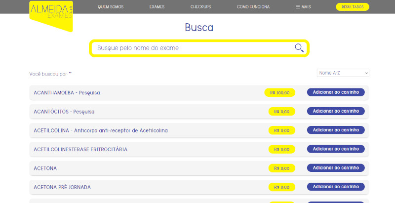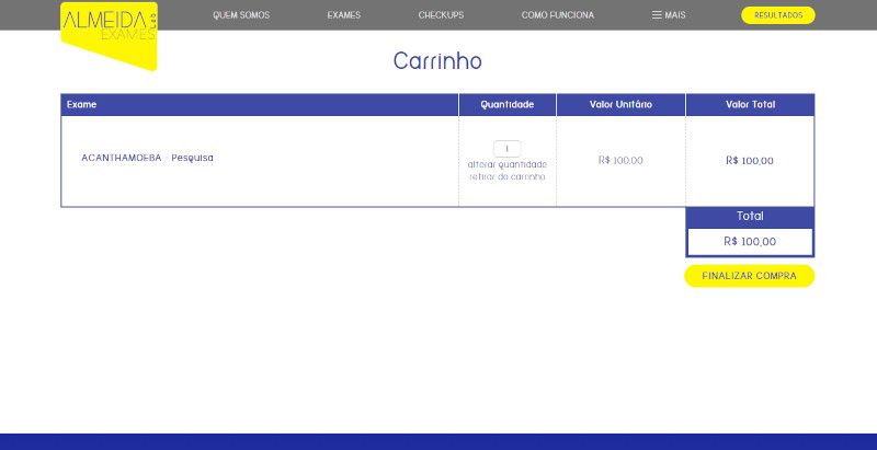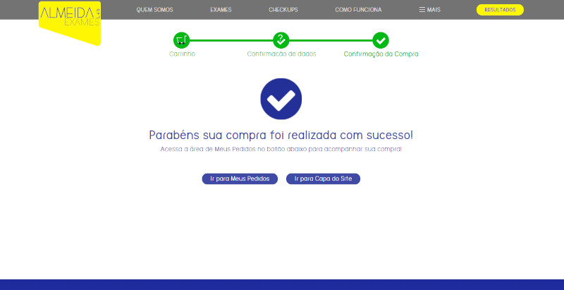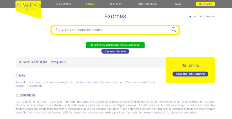 3º Passo: Clique em adicionar no carrinho e o exame será enviado para o Carrinho de compras, clique no botão "Ir para o carrinho" ou volte para adicionar mais exames.