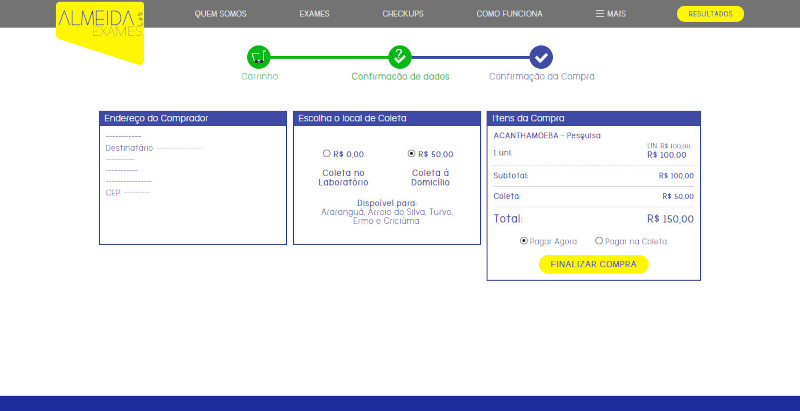 6º Passo: Confira todos os dados da sua compra, selecione o Local de Coleta desejado e clique em "Finalizar Compra".