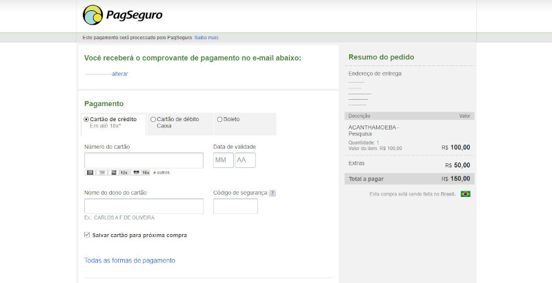 7º Passo: Você será redirecionado para a tela do Pagseguro, escolha a opção de pagamento desejada, preencha os dados e finalize o Pagamento.